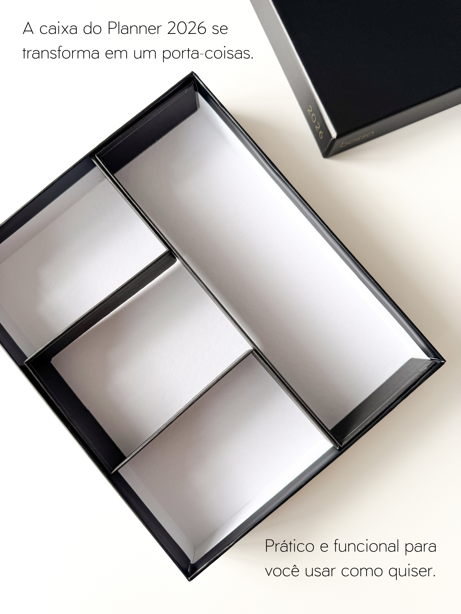 Minimalista na medida, tem espaço para sua organização mensal e semanal, mas sem esquecer suas metas para o ano.