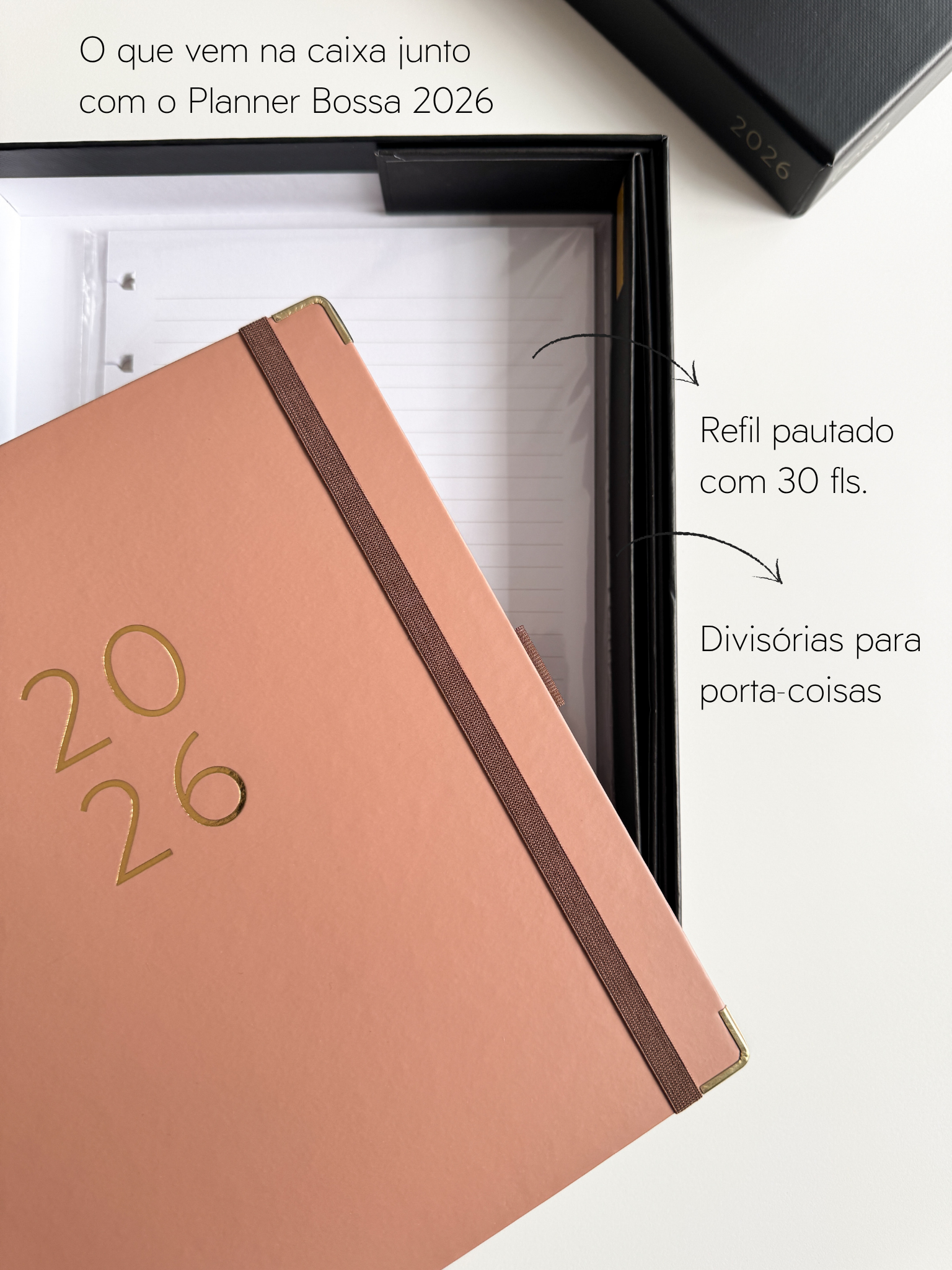 Minimalista na medida, tem espaço para sua organização mensal e semanal, mas sem esquecer suas metas para o ano.