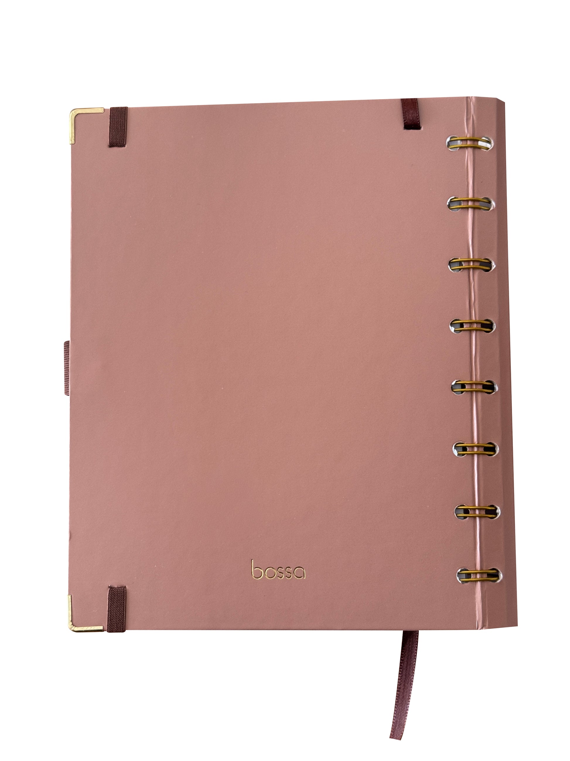 • Capa dura na cor mocha com detalhes em hot stamping dourado